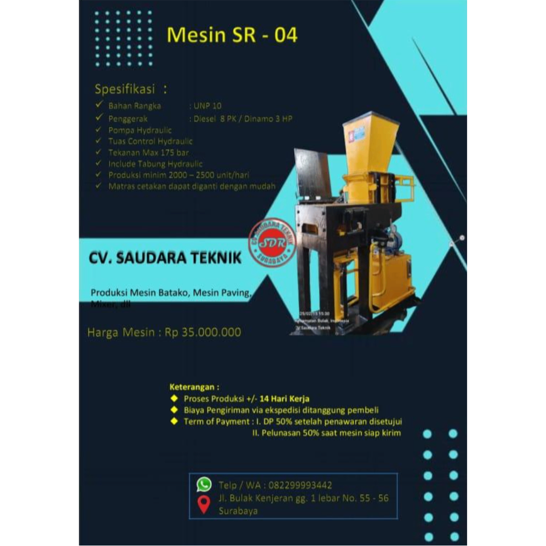 Ahli Mesin Batako Paving dan Molen berpengalaman sejak 2005.